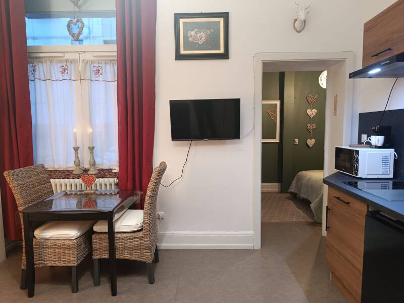 Situé à Colmar, à seulement 1 km de la Maison des Têtes, le Coeur d'Elsass "RAPP"appartement avec parking offre une vue sur la cour intérieure. Vous bénéficierez gratuitement d'une connexion Wi-Fi et d'un parking privé. Installé dans un bâtiment datant de 1900, l'appartement se trouve dans une région où vous pourrez pratiquer des activités telles que des visites à pied et à vélo. Cet appartement comprend une chambre, une télévision par satellite à écran plat, un lave-linge et une salle de bains pourvue d'une douche à l'italienne. Sa cuisine est équipée d'un combiné four micro-ondes. Les serviettes et le linge de lit sont fournis. Vous séjournerez à 300 mètres de la gare de Colmar et à 1 km de la collégiale Saint-Martin. L'aéroport le plus proche, celui de Bâle-Mulhouse-Fribourg, est situé à 56 km.